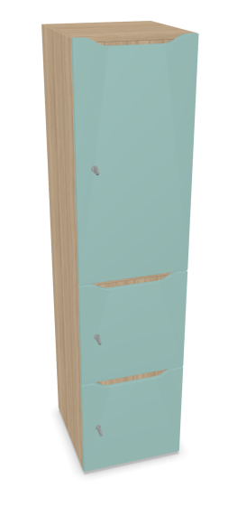 Meuble à cases H.182xL.45xP.50cm - 3 cases : 1 x H86cm (en haut) + 2 x H43cm (en bas). portes avec découpe en partie haute. serrure à code