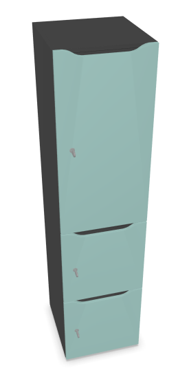 Meuble à cases H.182xL.45xP.50cm - 3 cases : 1 x H86cm (en haut) + 2 x H43cm (en bas). portes avec découpe en partie haute. serrure à code