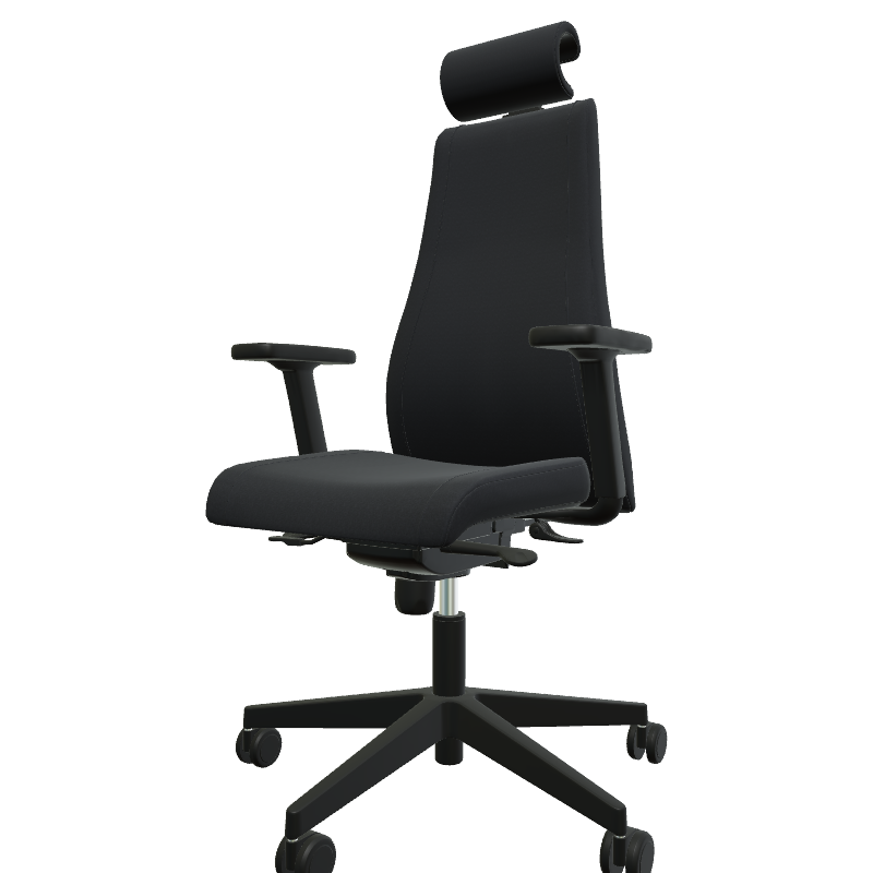 SO PRETTY - Fauteuil manager + têtière + accotoirs. Mécanisme synchrone décalé avec translation d'assise. Tissus Cuir Pleine Fleur Noir SQA SQA