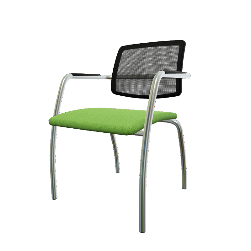 Diva - Chaise dos résille- Piétement 4 pieds chrome (CH).Assise tissu Bondai Vert (7048)