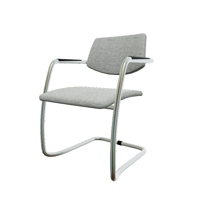 Diva - Chaise piétement luge chrome (CH).Assise et dossier tissu Berta Gris (AD2)