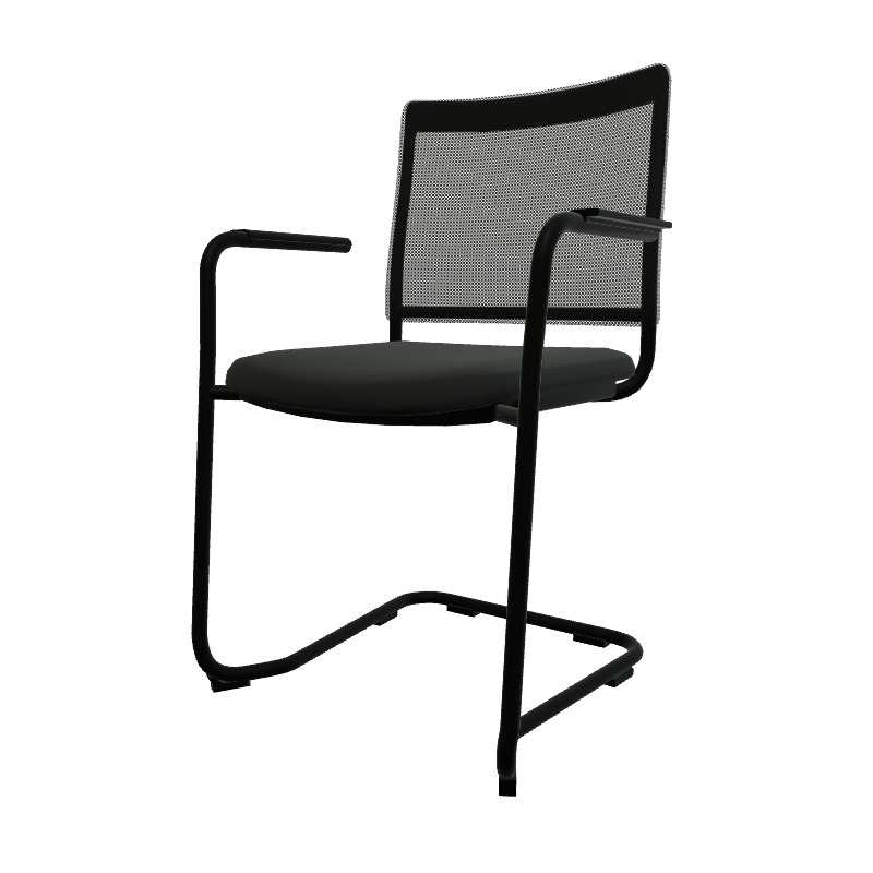 ZEN mesh visiteur - Chaise Piétement luge avec accotoirs noir laqué (A).Assise tissu et dossier résille Bondai Noir (8033)